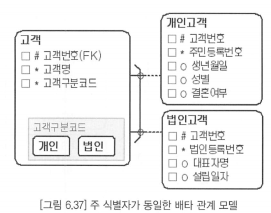 고객 엔터티는 개인고객과 법인고객의 공통속성을 포함하는 슈퍼타입이다.