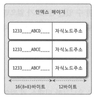 만약 같은 조건에서 인덱스 키 값이 32 Byte로 늘어났다고 가정하면 하나의 인덱스 페이지(16KB)에 372개의 키를 저장할 수 있다.