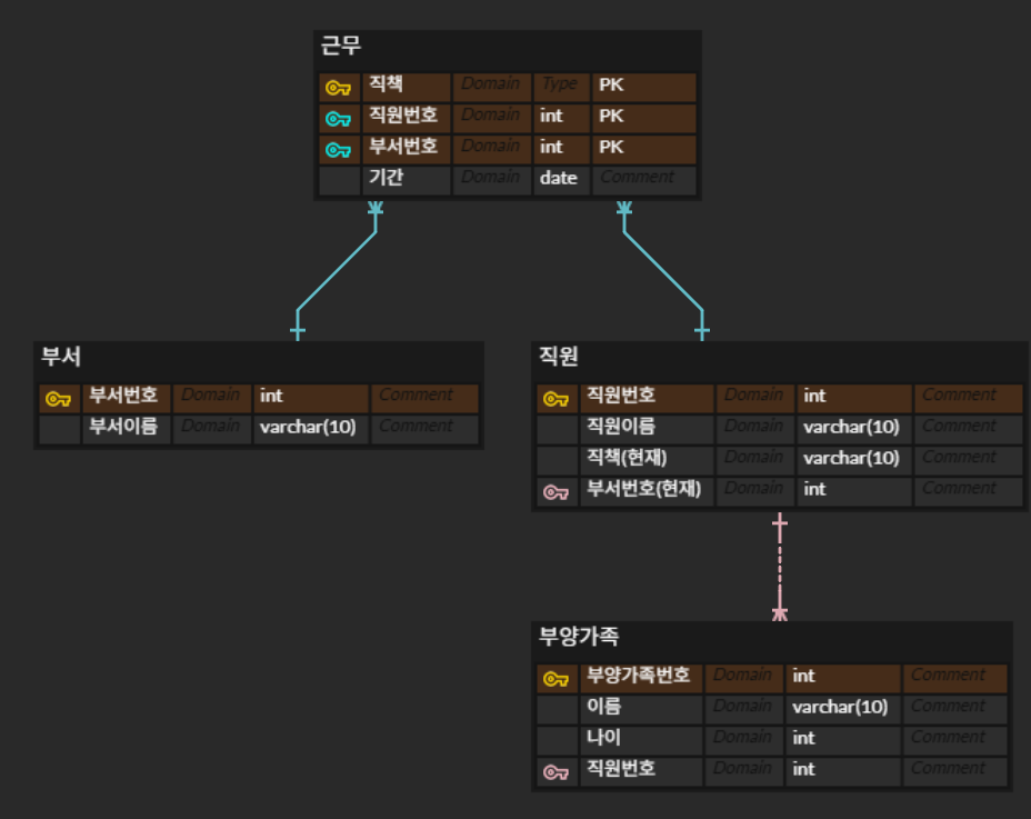 1:N 한 고객은 여러권의 책을 살 수 있지만 다른 고객이 산 책은 살 수 없다.