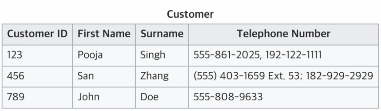 customer( [customer_id], first_name, sur_name, home_number, phone_number )