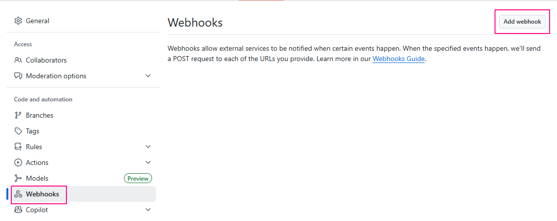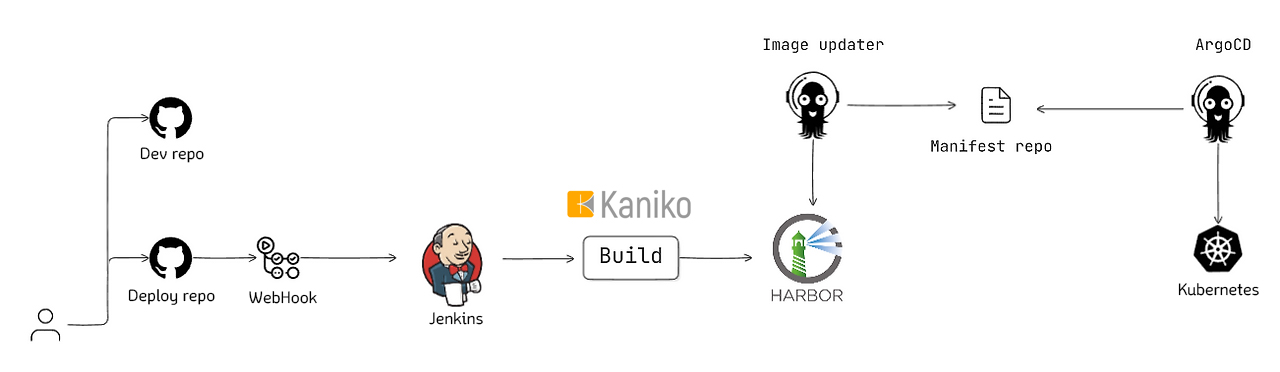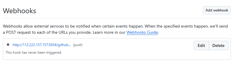 모든 repository를 webhook 작업을 해주어야한다. 프로젝트를 push해서 main branch가 수정되면 CI/CD가 작동된다.