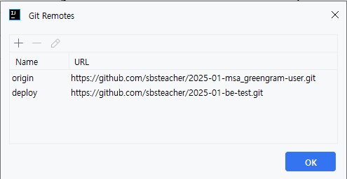 (IntelliJ 메뉴) Git > Manage Remotes... 선택